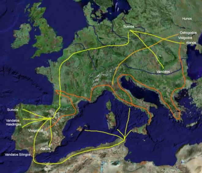 pueblos germánicos llegan al sur empujados por otros pueblos germánicos más